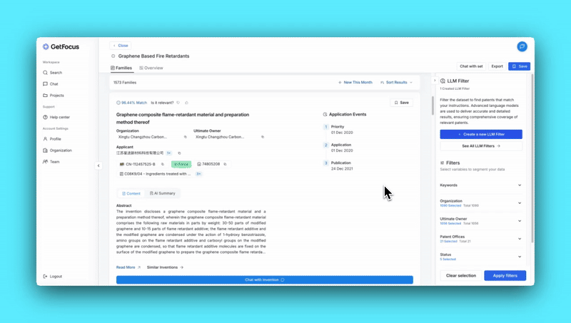 GetFocus is the AI platform where IP and R&D finally speak the same language. Go beyond keyword tools, find what you mean, summarize what matters, and turn patent data into decisions.